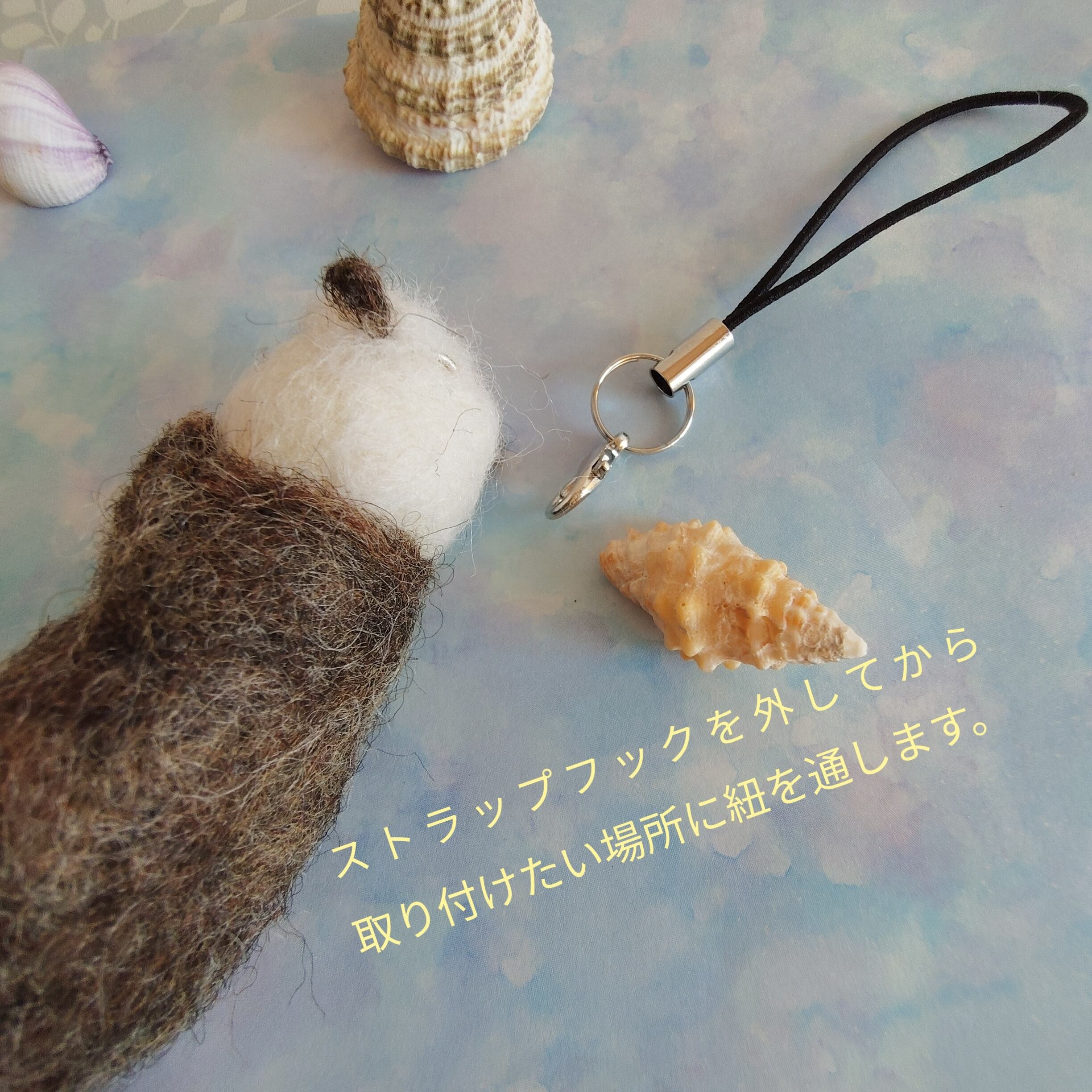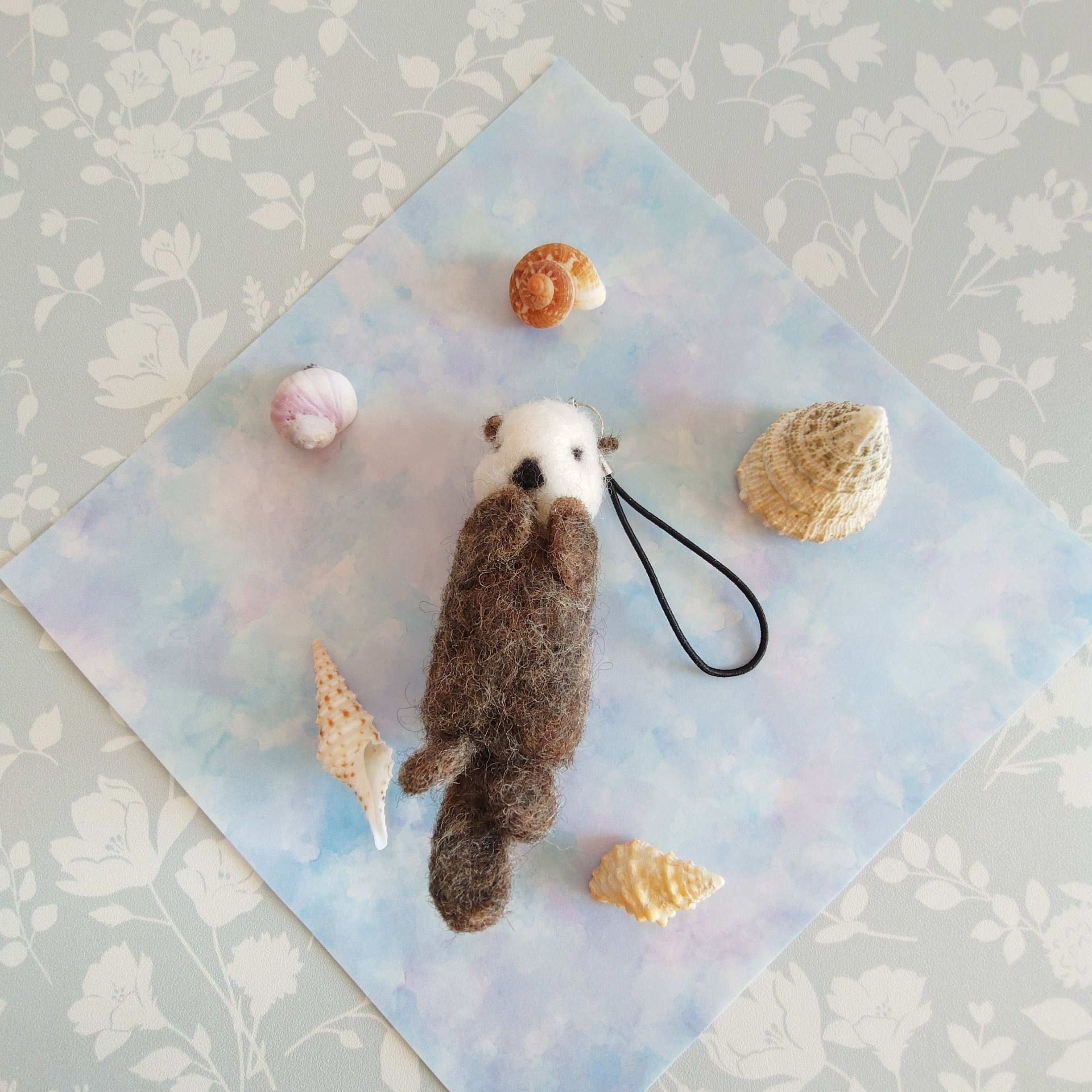 ☆羊毛フェルトはデリケートな素材ですので、本来は鑑賞用がベストなのですが、いつもそばにラッコちゃんを。という想いでストラップにいたしました。摩擦や水濡れにご注意ください。