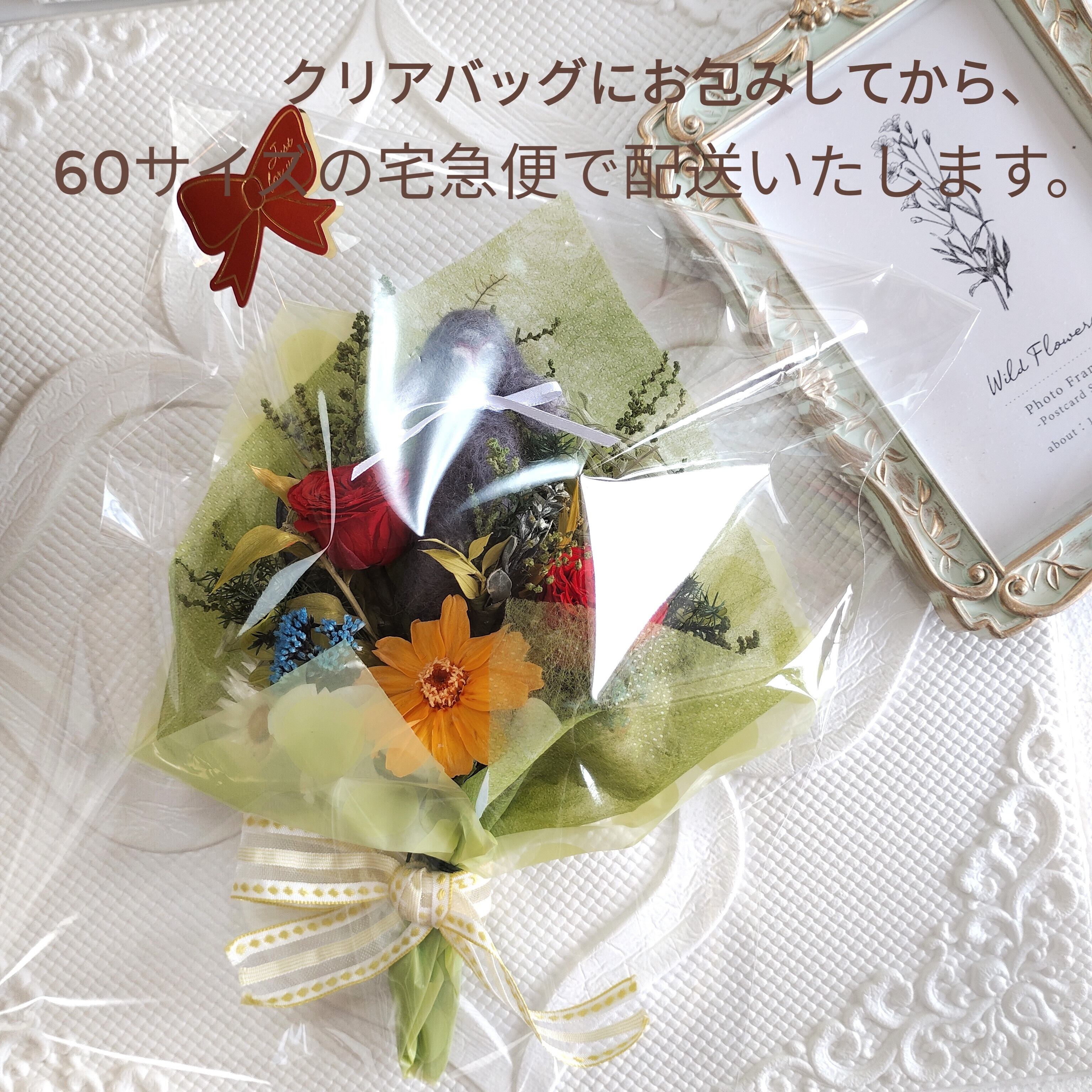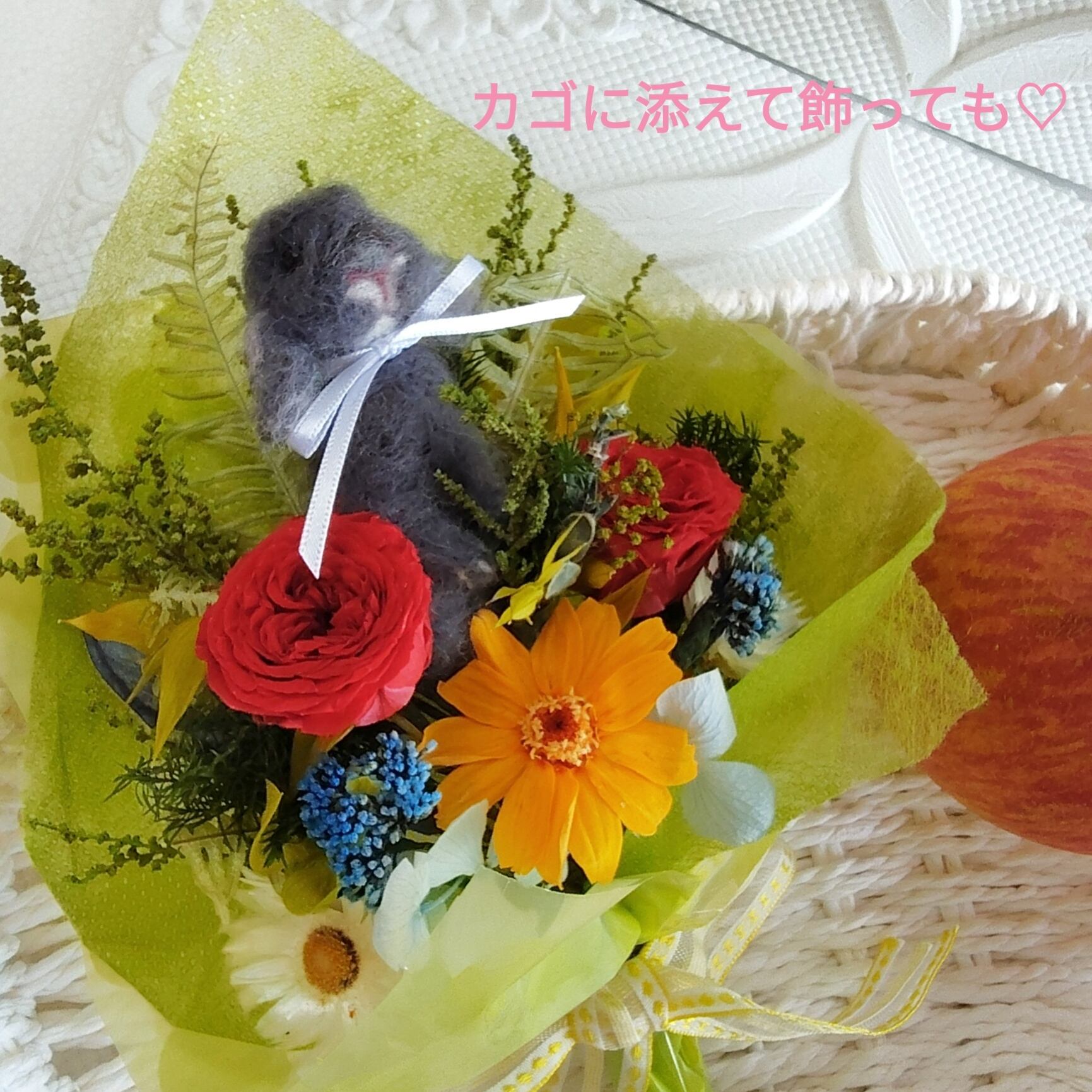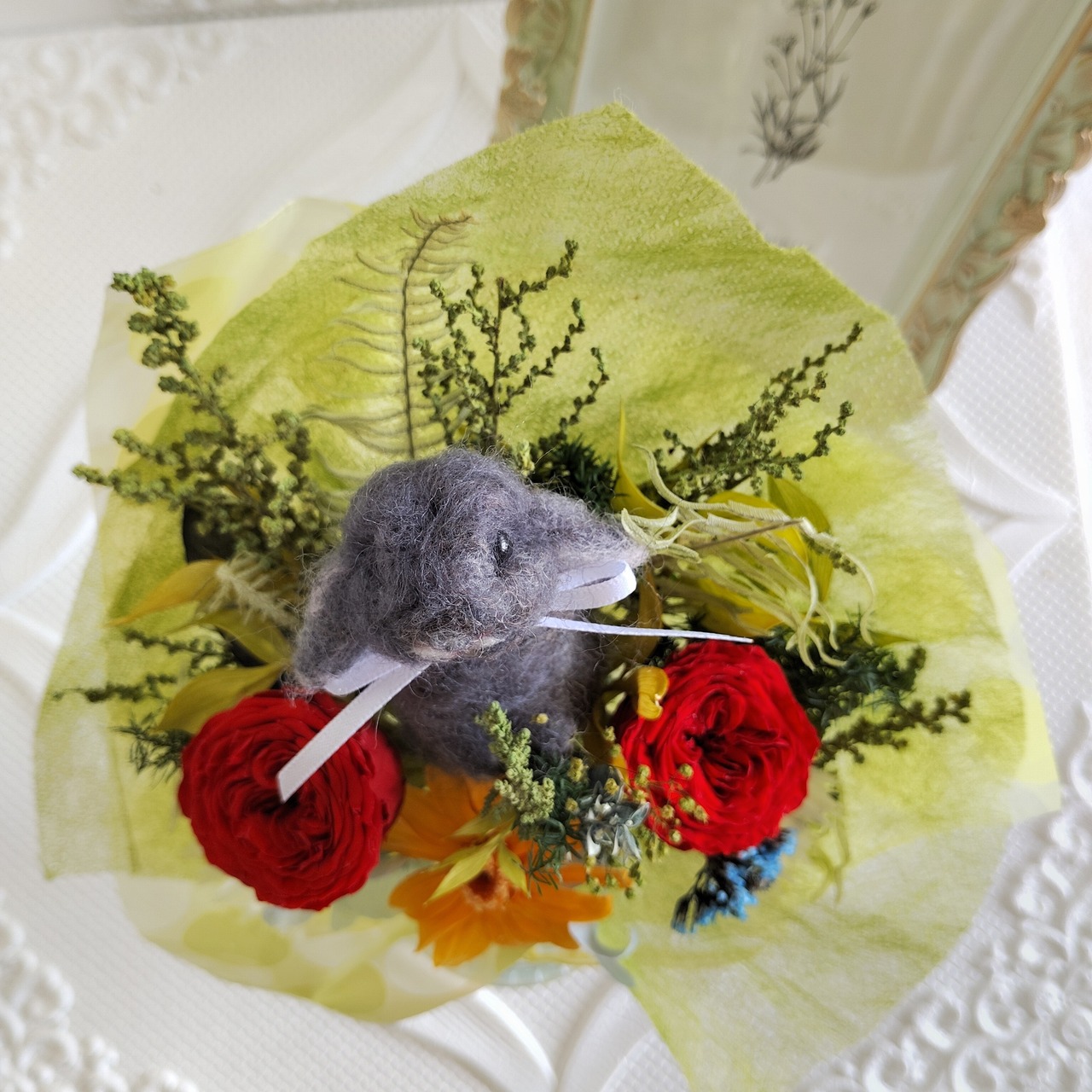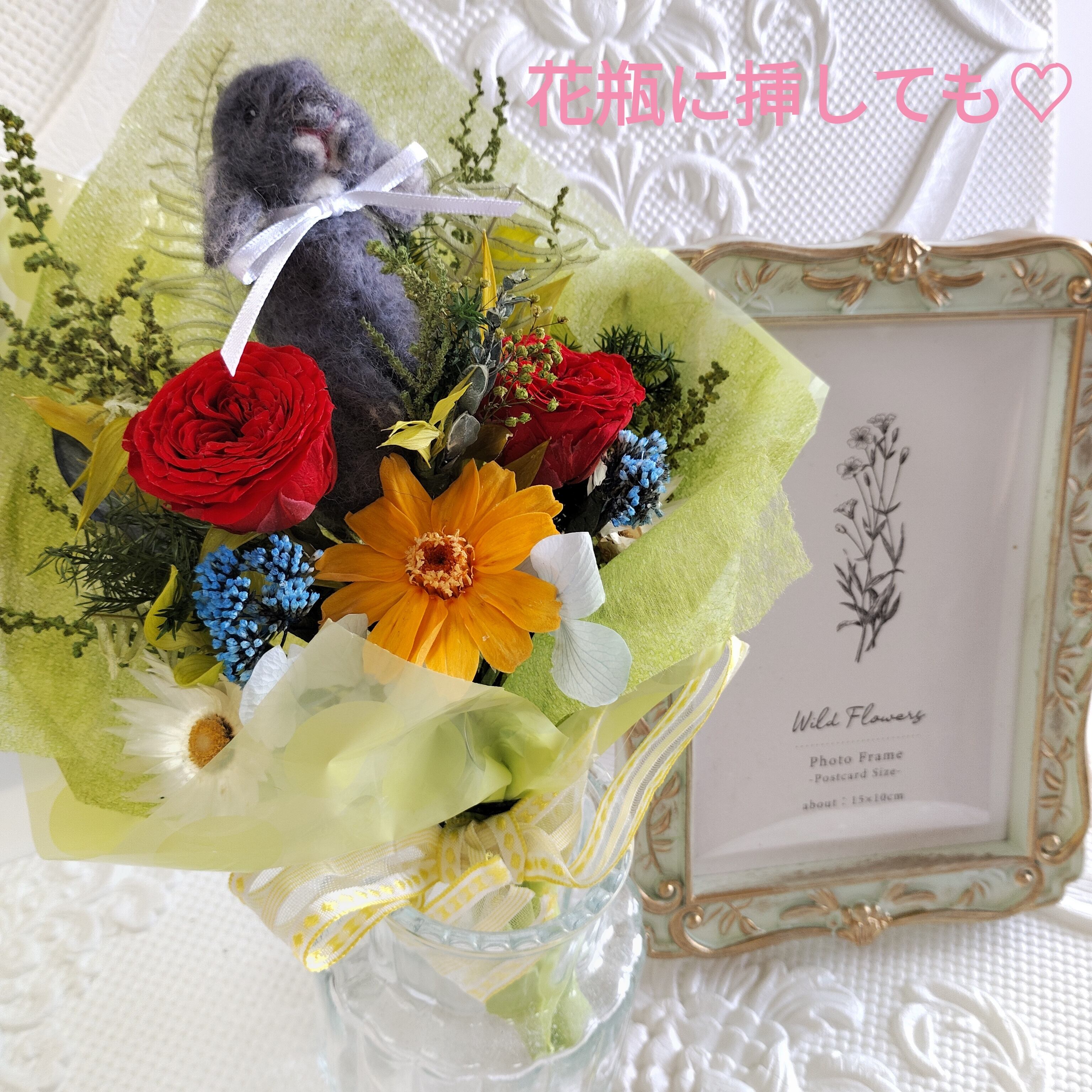 艶やかさに包まれて。たれ耳うさぎさんのブーケ/羊毛フェルト/プリザーブドフラワー/◆【宅急便・送料別】◆