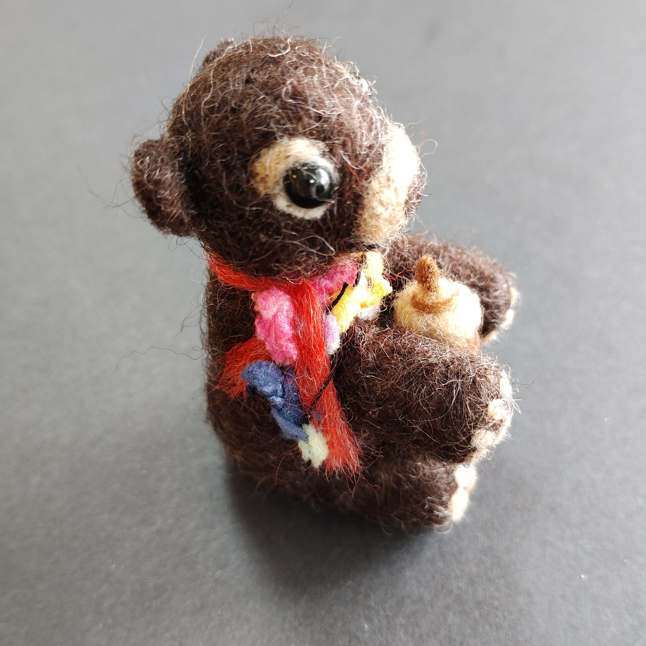 見ているだけであたたかい気持ちになる、羊毛フェルトのくまちゃんです。